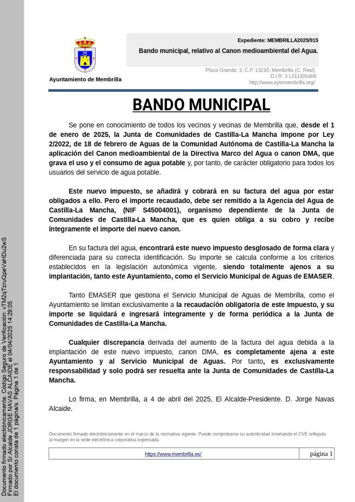Se pone en conocimiento de todos los vecinos y vecinas de Membrilla que, desde el 1 de enero de 2025, la Junta de Comunidades de Castilla-La Mancha impone por Ley 2/2022, […]